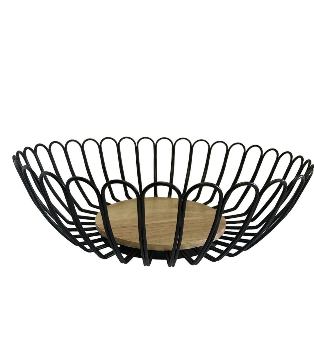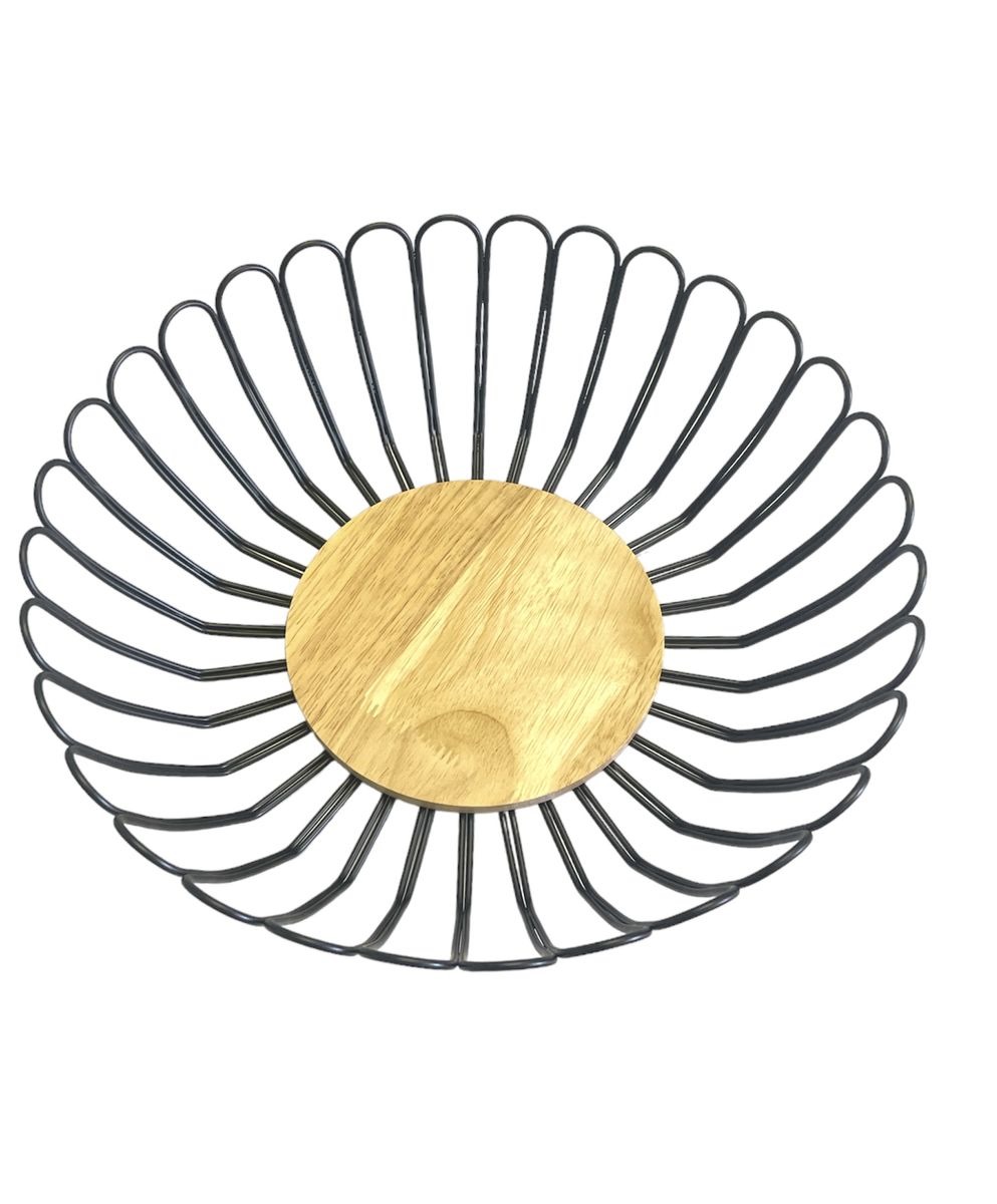 – Elevate your home decor with this elegant black round metal decorative fruit bowl with wooden base